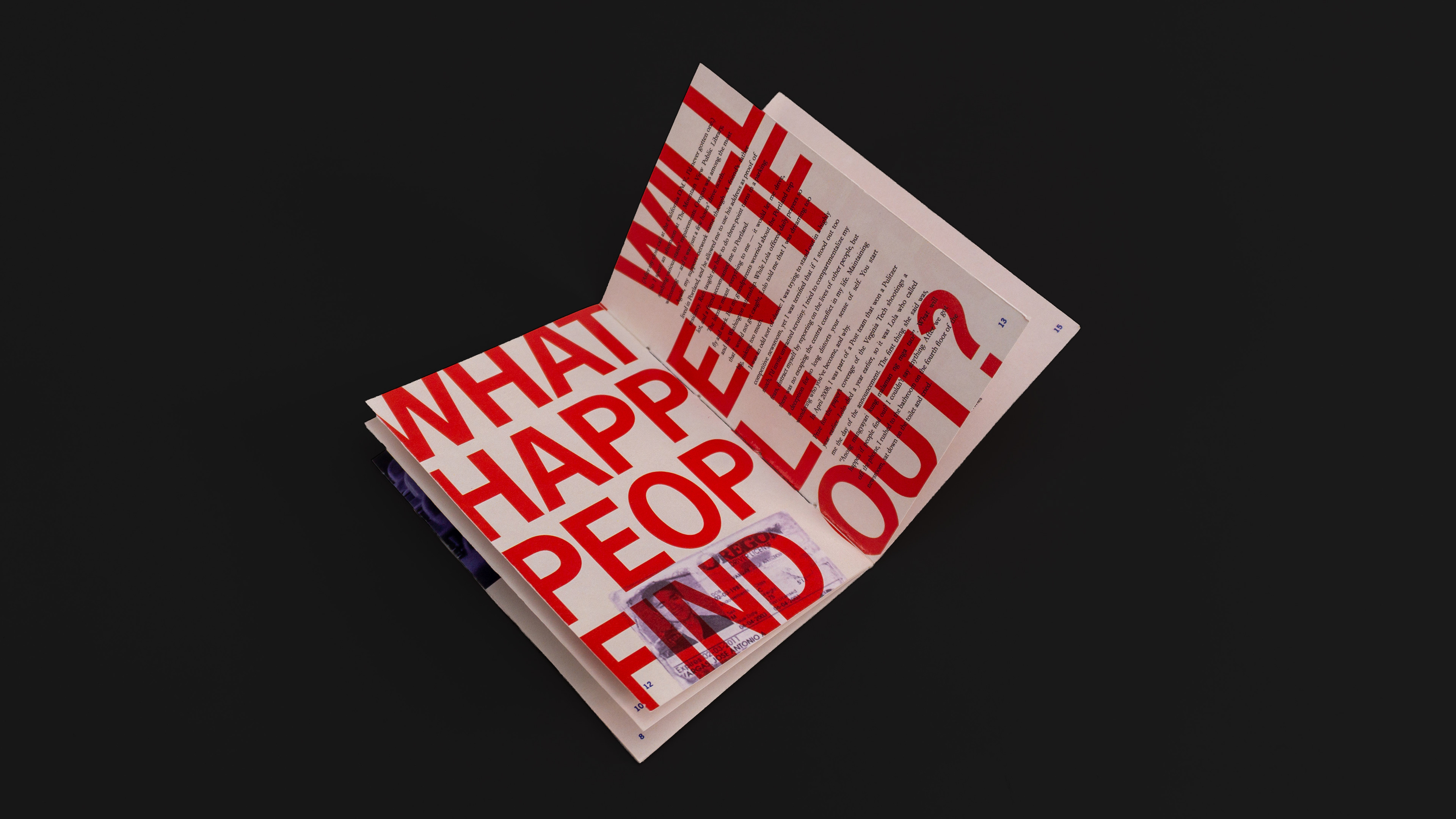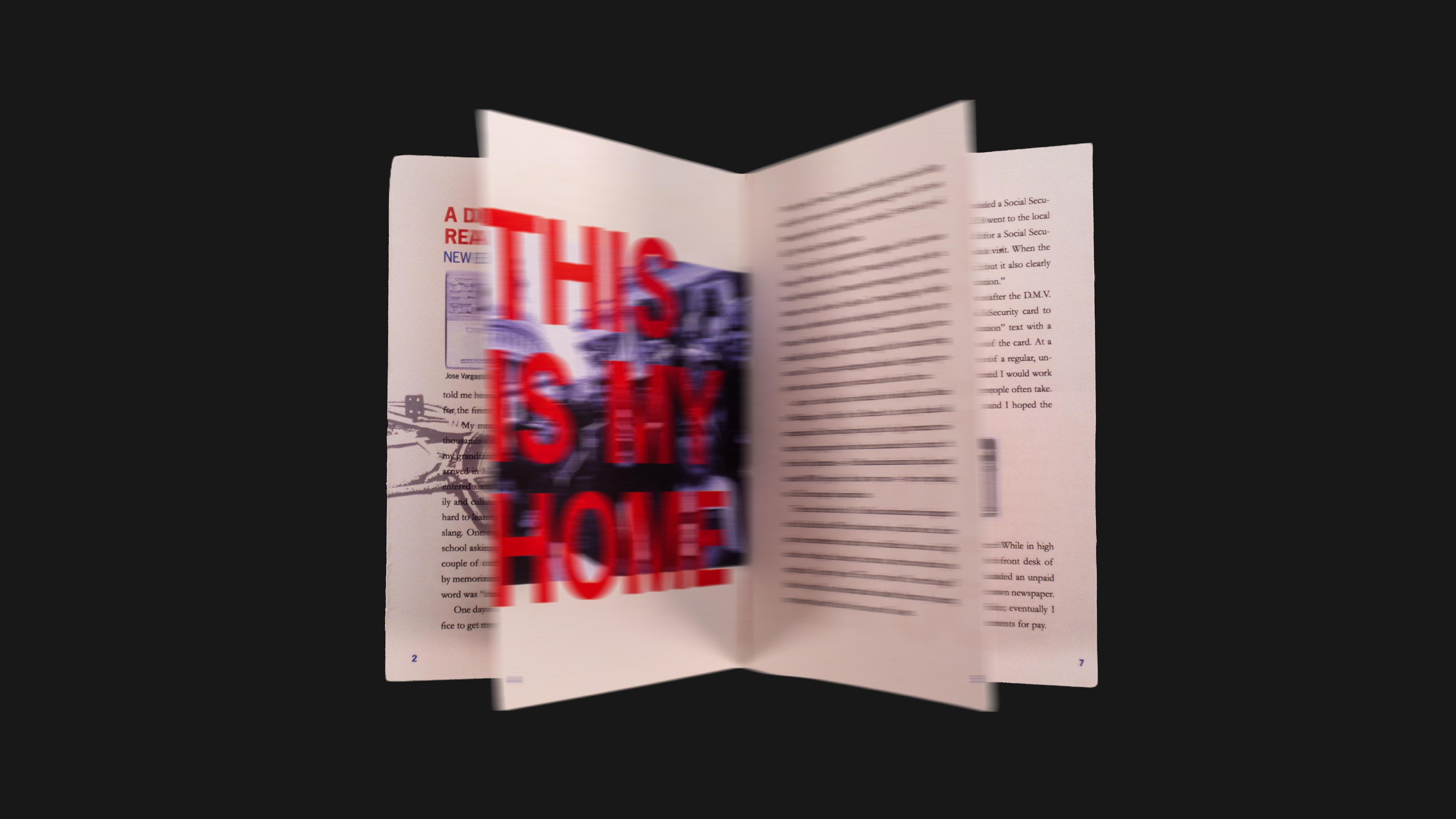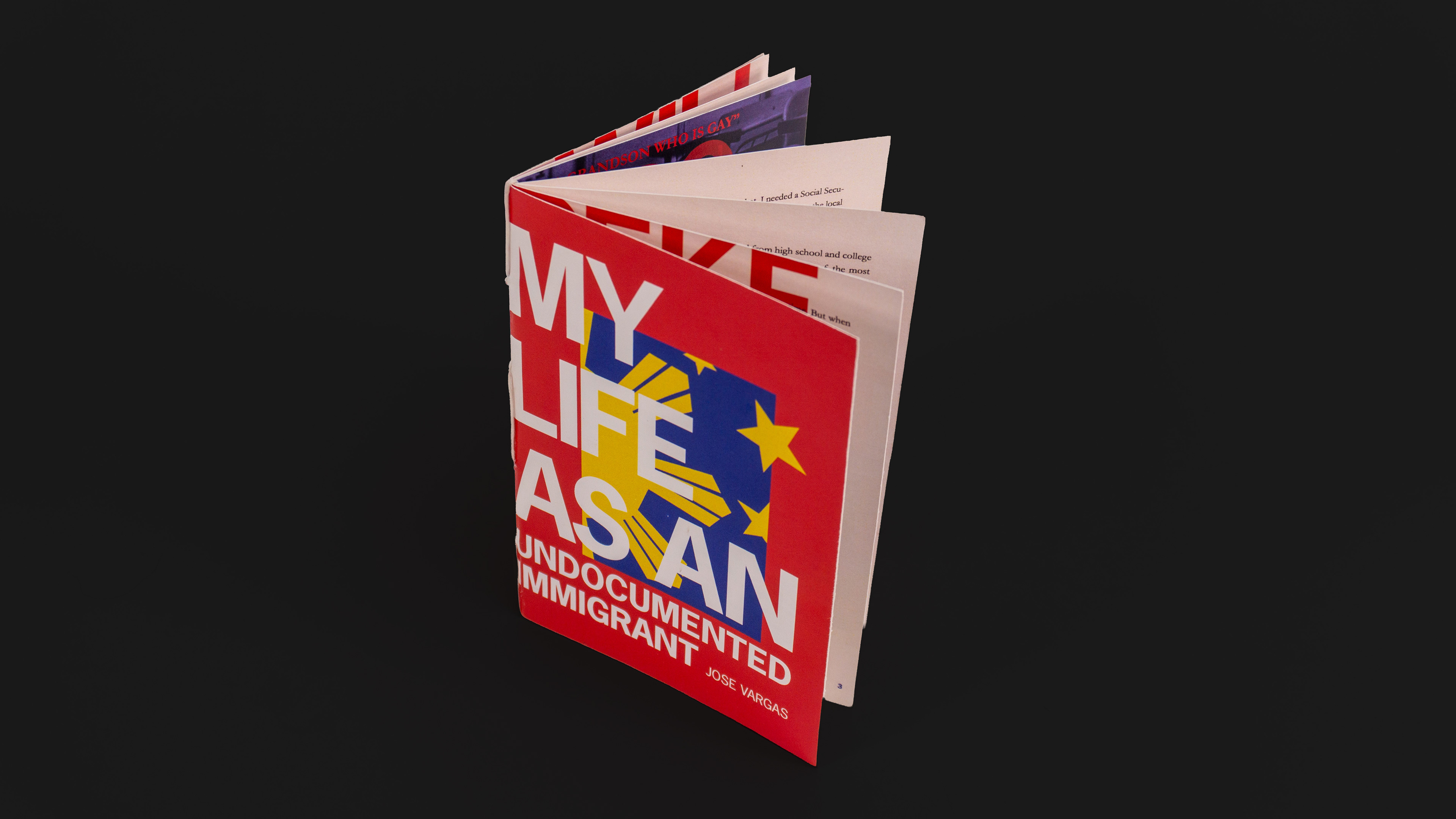 The chapbook is based on an article by Jose Vargas detailing his life as an undocumented immigrant. Research into his heritage and personal background informed the color palette and typographic choices, allowing the design to reflect the story’s tone, emotion, and lived experience.